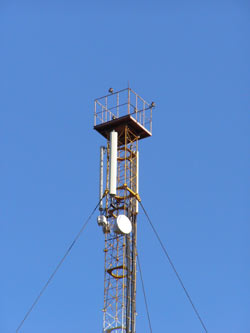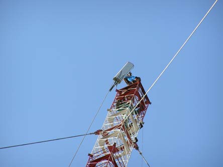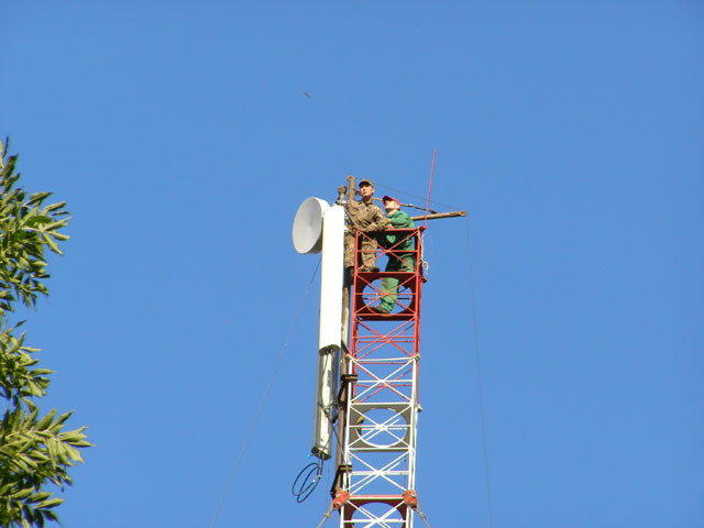 Монтаж последней секции, из которых собрана вышка, повлек за собой новые события. На место строительства были подвезены первые сетевые компоненты, которые непосредственно участвуют в приемо-передаче информации.