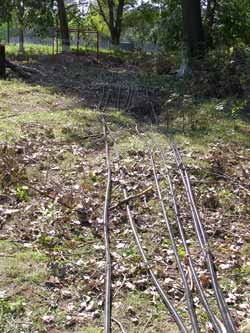 Крепится кабель приблизительно через каждые 40 см. В месте крепления пара кабелей обжимается пластиковыми втулками и прижимается металлической скобой.