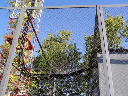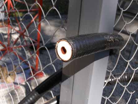 Учитывая большую длину кабеля и сложность работы на высоте, кабель крепится довольно продолжительное время. Для отвода в землю электрического разряда, возникающего при грозе, сигнальный кабель заземляется.