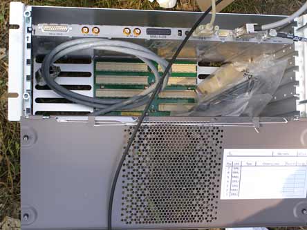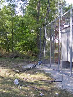 Не данном этапе работа инженеров оператора мобильной связи закончена. Продолжается монтаж базовой станции. Следующий этап - проводка кабелей от антенн, мини-линка и сигнальных фонарей к будке. От огромной бухты кабеля было отрезано шесть кусков по 60 метров каждый, по два кабеля на каждую антенну.